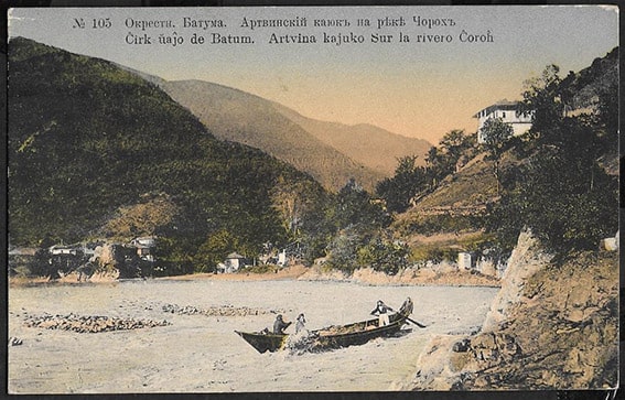 Почтовая карточка. № 105 Окрестн. Батума. Артвинский каюк на реке Чорох