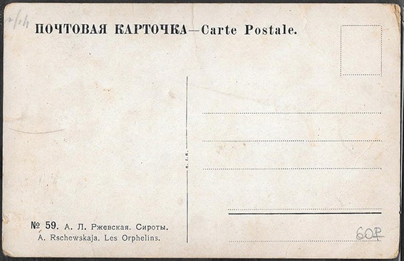 Почтовая карточка. № 59 Худ. А.Л. Ржевская. Сироты
