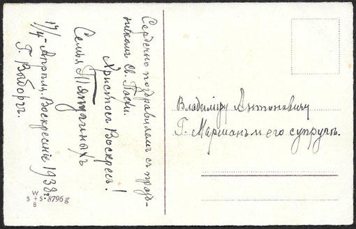 Почтовая карточка. Поздравление с Пасхой! г. Выборг 1938 г