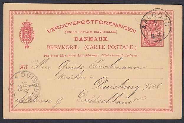 Почтовая карточка прошла почту. Дания. 1888 год