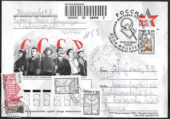 Почтовая карточка прошла почту со спецгашением - День Филателиста, 2007 год