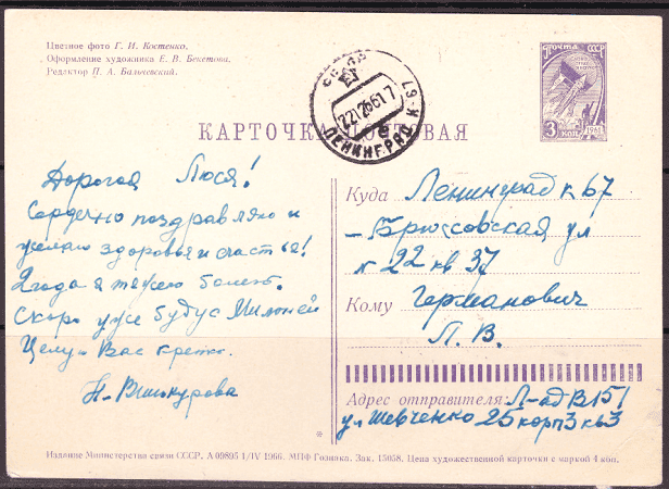 Почтовая карточка С Новым Годом! 01.04.1966 год Прошла почту.