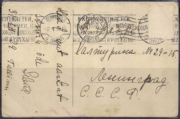 Почтовая карточка. С Новым годом! Эстония 1929 год, прошла почту