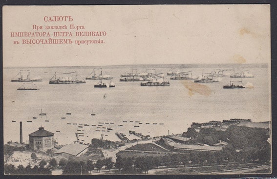 Почтовая карточка. Салют При закладке Порта Императора Петра Великого в высочайшем присотствии. Изд. Изд. Фот. Иванова в Ревеле