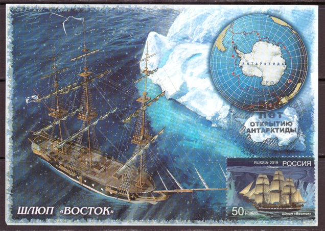 Почтовая карточка. Шлюп Восток. Спецгашение - 200 лет открытию Антарктиды