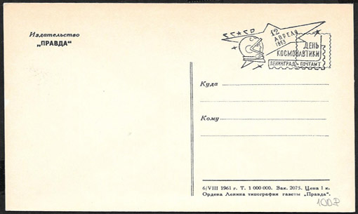 Почтовая карточка со спецгашением - День космонавтики, 1963 год