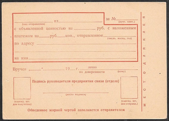 Почтовая карточка. Уведомлении о вручении почтового отправления, 1966 год