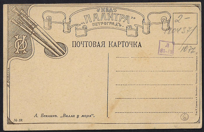 Почтовая карточка. Вилла у моря. А. Беклин. 1914 г.
