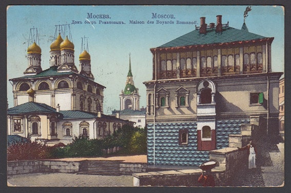Почтовая карточка. Всемирный почтовый союз прошла почту 1912 год. Москва. Дом Бояр Романовых