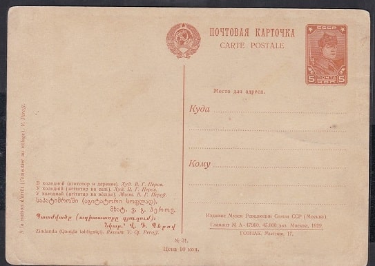Почтовая маркированная карточка, 1929 год. В холодной (агитатор в деревне), худ. Перов