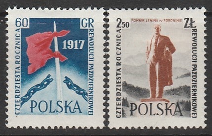 Польша 1957 год. 40 лет Октябрьской революции, 2 марки
