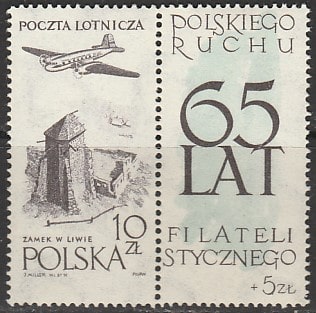Польша 1959 год. 65 лет филателистическому движению в Польше, 1 марка с купоном наклейкам