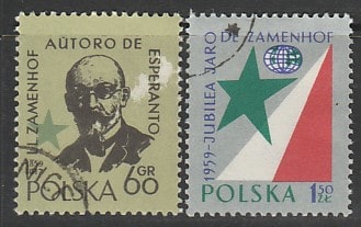Польша 1959 год. Людвик Лазарь Заменгоф, создатель языка эсперанто, 2 марки (гашёные)
