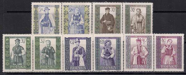 Польша 1959 год. Национальная одежда. 5 пар марок