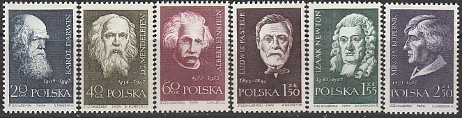 Польша 1959 год. Великие учёные, 6 марок (наклейка)