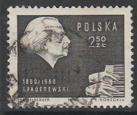 Польша 1960 год. 100 лет со дня рождения пианиста и композитора Игнация Яна Пандеревского, 1 марка (гашёная)