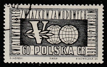 Польша 1961 год. V Международный конгресс профсоюзов. Эмблема, 1 марка (гашёная)
