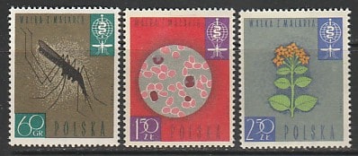 Польша 1962 год. Борьба с малярией, 3 марки.