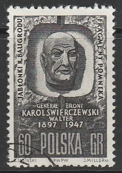 Польша 1962 год. К. Вальтер, генерал и политик; фрагмент памятника, 1 марка.