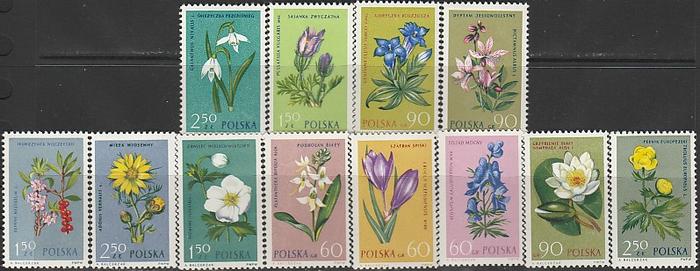 Польша 1962 год. Охраняемые цветы, 12 марок (н