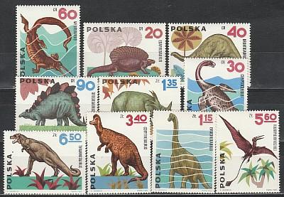 Польша 1965 год. Динозавры. 10 марок. НАКЛЕЙКИ