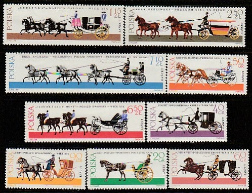 Польша 1965 год. Повозки с лошадьми, 9 марок (наклейка) (7/3)