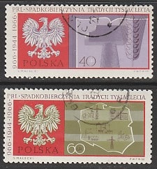 Польша 1966 год. 1000 лет Польше. Герб, 2 марки