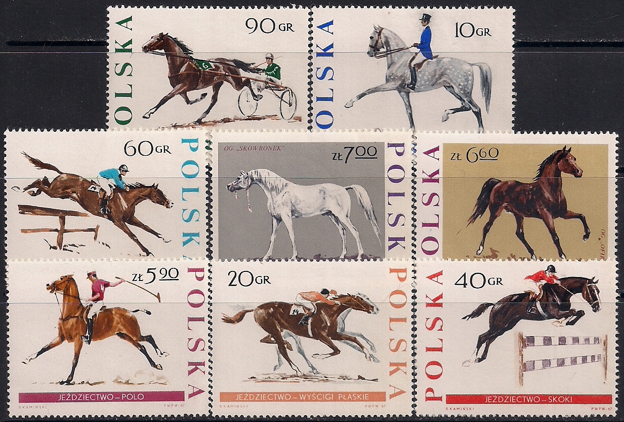 Польша 1967 год. 150 лет конному спорту. 8 марок