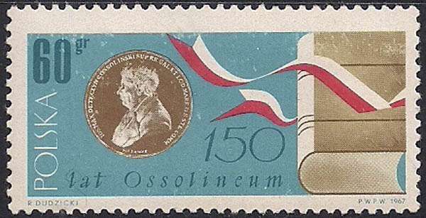 Польша 1967 год. 150 лет Национальной библиотеке, основанной графом Й. Оссолинским. 1 марка