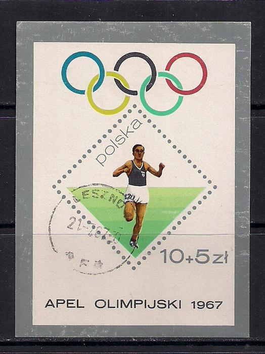 Польша 1967 год. Легкоатлет Я. Кусочиньский, олимпийский чемпион 1932 года. 1 гашеный блок