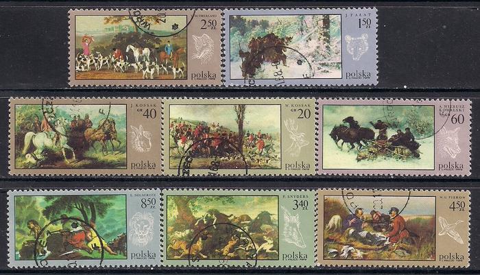 Польша 1968 год. Картины на тему охоты. 8 гашеных марок