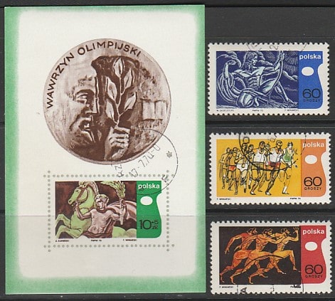 Польша 1970 год. X сессия Международной Олимпийской Академии, 3 марки + блок (гашёные)