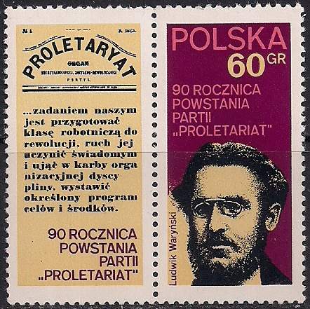 Польша 1972 год. 90 лет основанию партии "Пролетариат". 1 марка с купоном