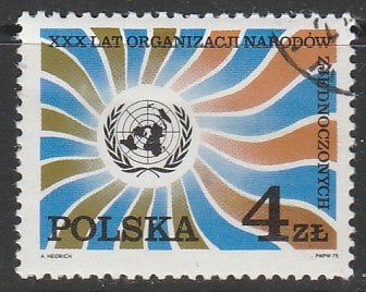 Польша 1975 год. 30 лет ООН, 1 марка (гашёная)