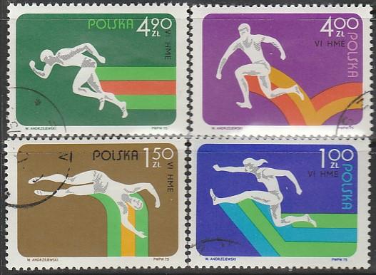 Польша 1975 год. VI Чемпионат Европы по лёгкой атлетике. 4 гашёные марки