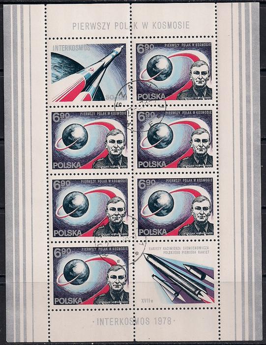Польша 1978 год. Первый польский космонавт Мирослав Гермашевский. Гашеный блок