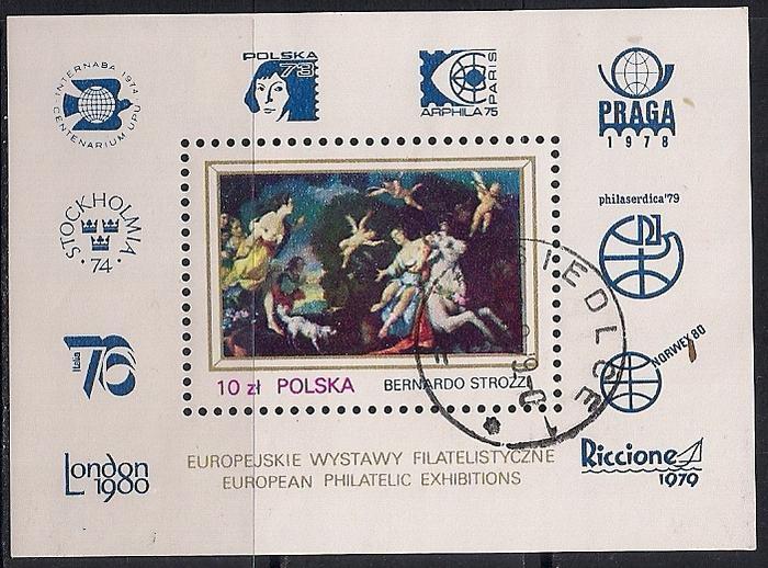 Польша 1979 год. Филвыставка в Европе. Картина итальянского художника Бернардо Строцци. Гашеный блок