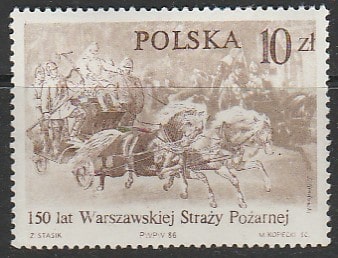 Польша 1986 год. 150 лет Варшавской пожарной команде, 1 марка.