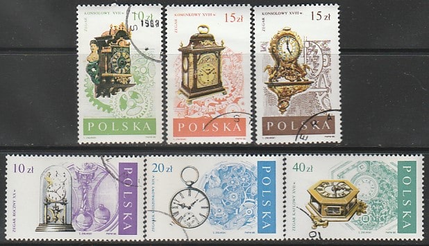 Польша 1988 год. Часы, 6 марок (гашёные)