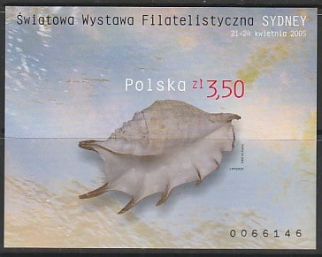 Польша 2005 год. Международная филвыставка в Сиднее. Морская улитка, б/зубц. блок (н