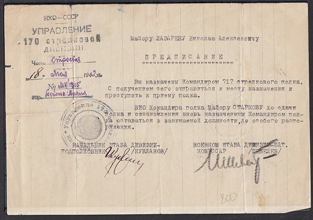 Предписание. Управление 170 стрелковой дивизии, 18 мая 1942 год