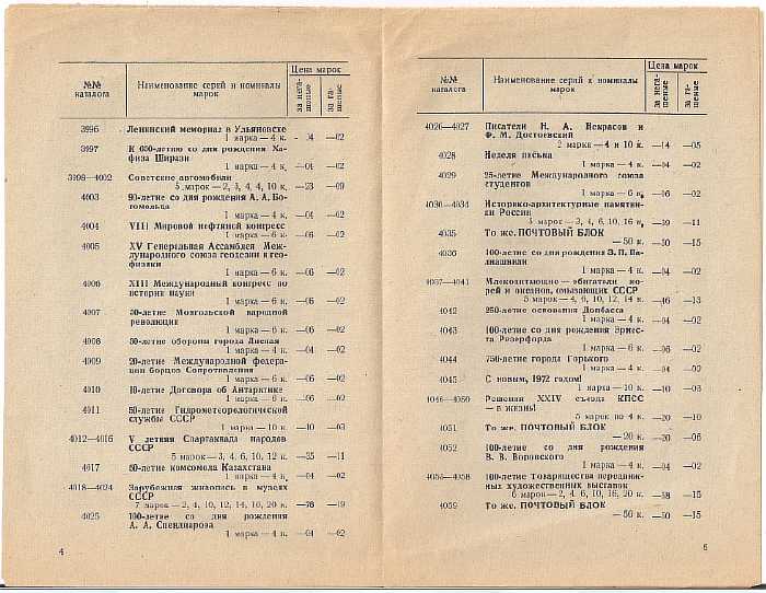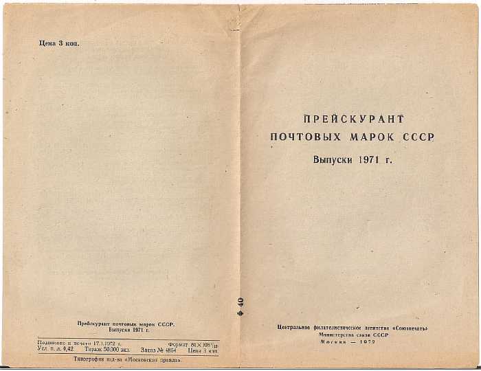 Прейскурант почтовых марок СССР. Выпуски 1971 года
