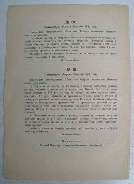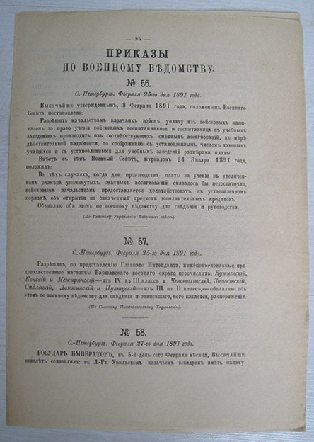 Приказы по военному ведомству от 1891 года. Разрешить начальствам казачьих войск уплату... 4 страницы