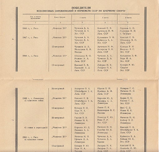 Программа Лично-командное первенство СССР по буерному спорту 1956 года