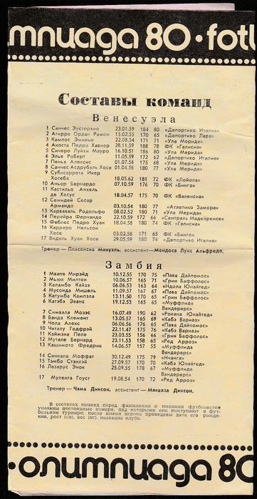 Программа Олимпийского группового турнира по футболу. Ст. им. Кирова. Венесуэла - Замбия. 24 июля 1980 г.Программа Олимпийского группового турнира по футболу. Ст. им. Кирова. Венесуэла - Замбия. 24 июля 1980 г.Программа Олимпийского группового турнира по футболу. Ст. им. Кирова. Венесуэла - Замбия. 24 июля 1980 г.