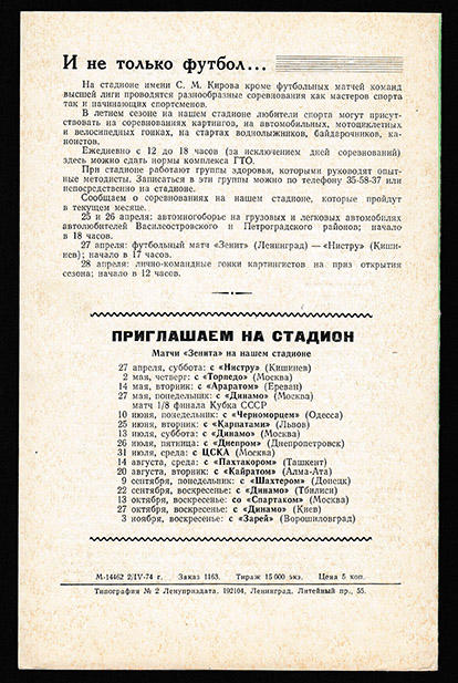 Программка. Футбол. Чемпионат СССР, высшая лига, сезон 1974 годПрограммка. Футбол. Чемпионат СССР, высшая лига, сезон 1974 годПрограммка. Футбол. Чемпионат СССР, высшая лига, сезон 1974 год