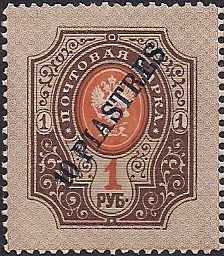 Провизории Бейрута. РОПиТ 1918 год. НДП "10 пиастр" на марке 1 рубль. 1 марка из серии