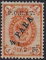 Провизории Бейрута. РОПиТ 1918 год. НДП "1/2 пиастр" на марке "4 para" (1 копейка). 1 марка из серии. наклейка