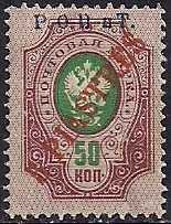 Провизории Бейрута. РОПиТ 1918 год. НДП "5 пиастр" на марке 50 копеек. 1 марка из серии