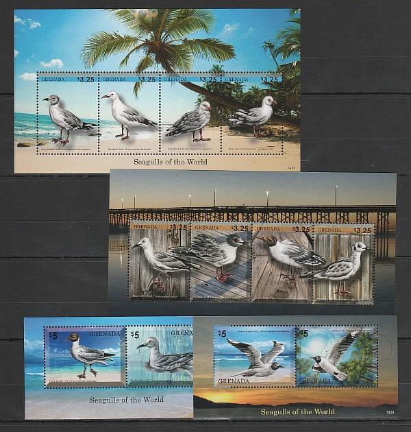 Птицы, Чайки, Гренада 2014, 2 малых листа + 2 блока